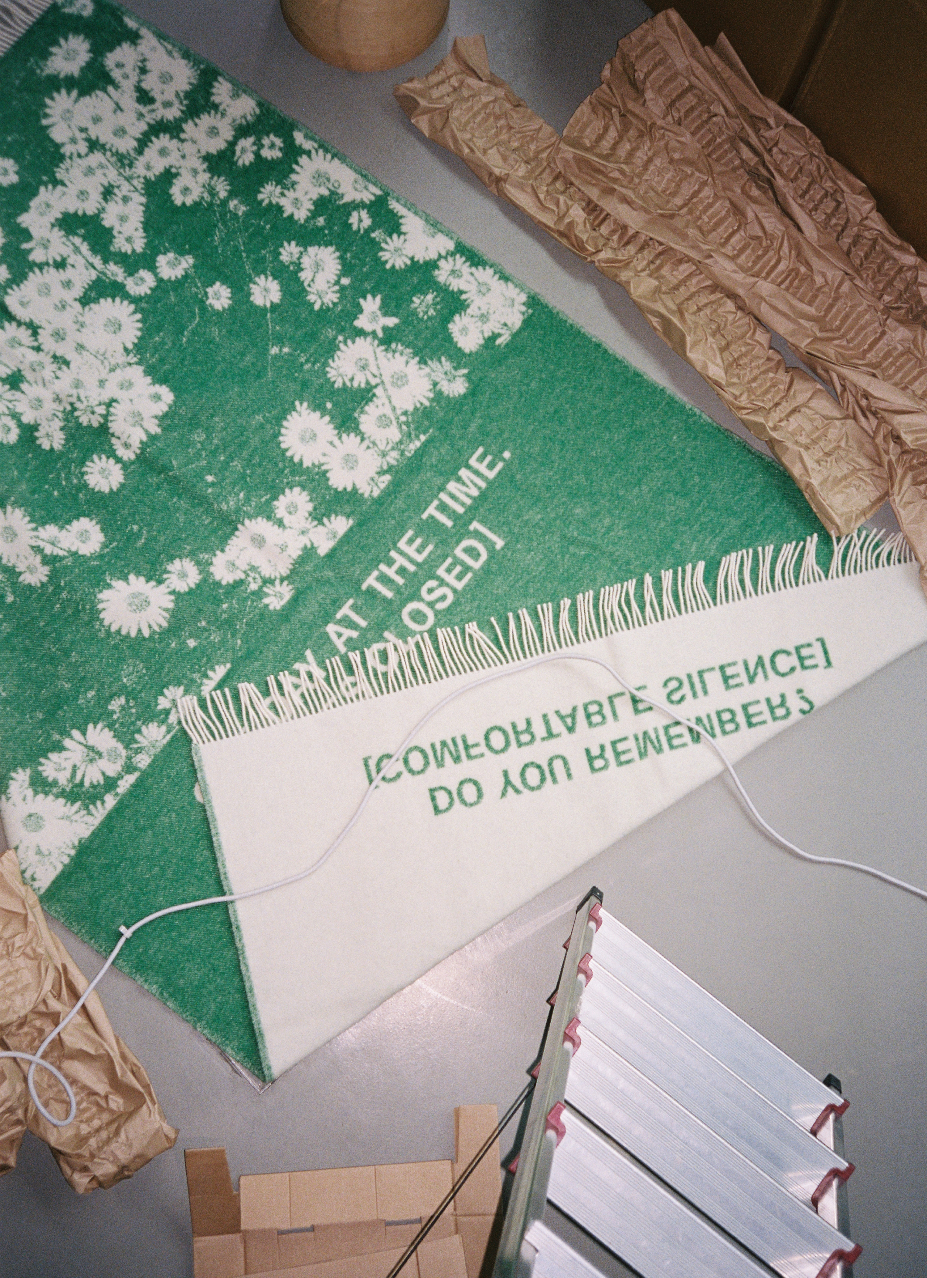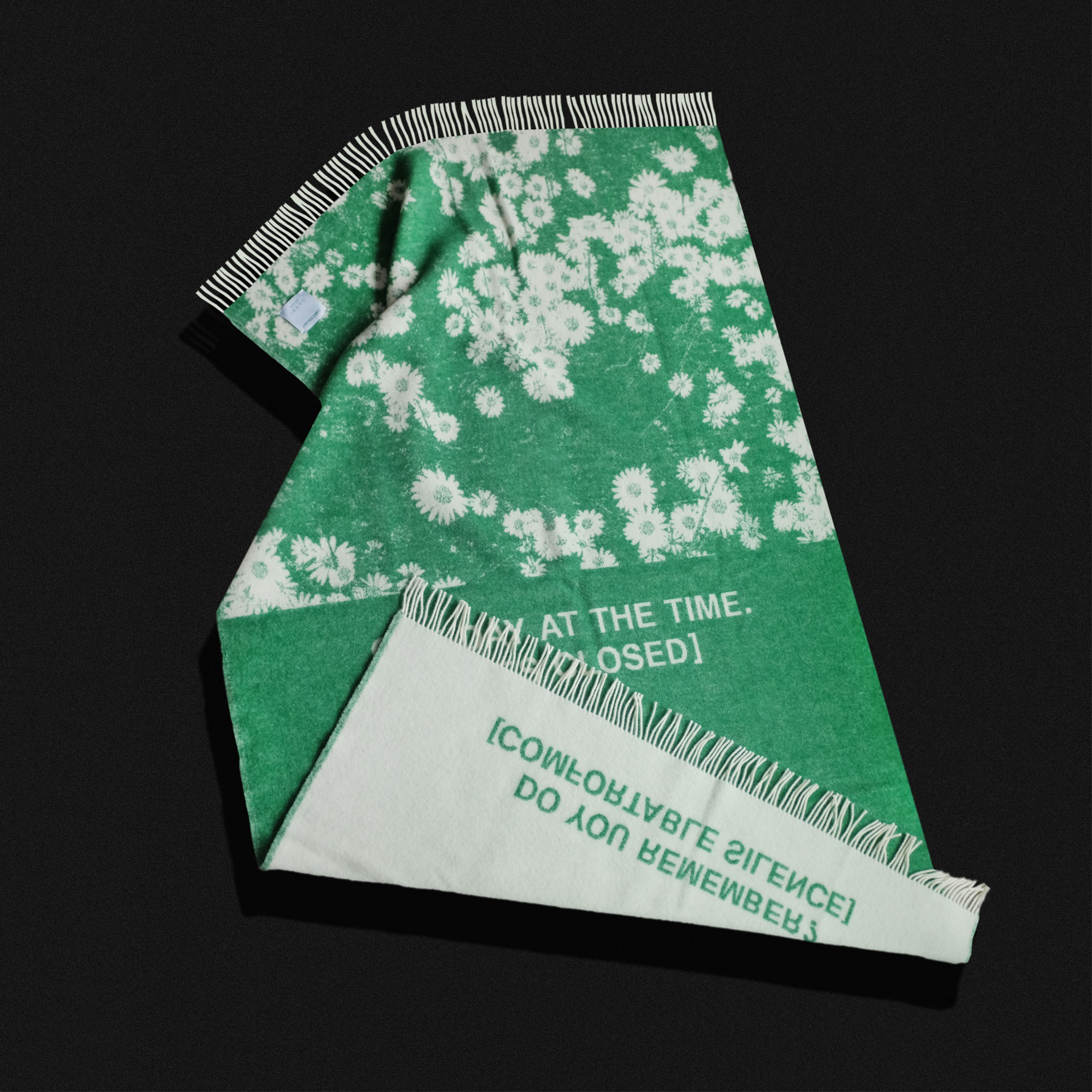Woven in 100% New Zealand virgin wool, the Meadow blanket captures an intimate memory of late summer in a soft, tactile weave. Its lively green ground evokes sun-warmed grass, with a scattering of daisies drifting across the surface like a quiet afternoon paused in time. Subtle captions introduce a calm, almost cinematic pause — a suggestion of narrative without a fixed story — a gentle reminder of summer’s stillness, preserved in wool.